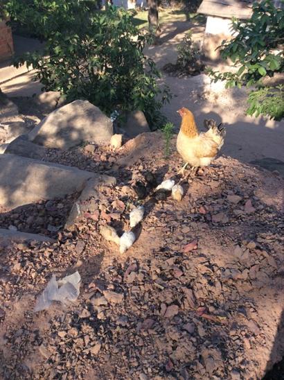 We’re not the only ones who enjoy spending time at Living Compassion. Chickens from around the community come to spend some time in the wonderful shade that all our trees provide.