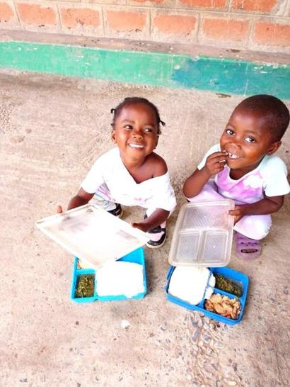 Here are two of our little ones from Teacher Memory's class. They are the first to eat. The little ones beam with joy when school is over and it's time to eat. And there's joy in taking food home to share.