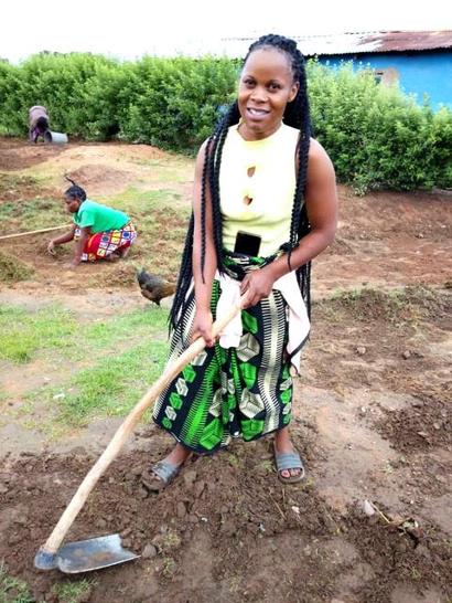 Martha Mwanza weeding outside Living Compassion. When she and the others are not on duty cooking, they clear the surroundings to make sure the property looks neat.