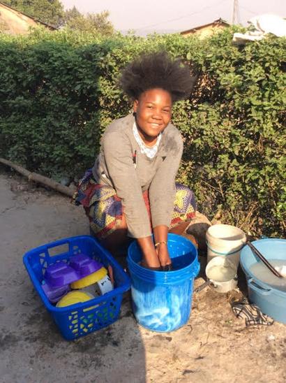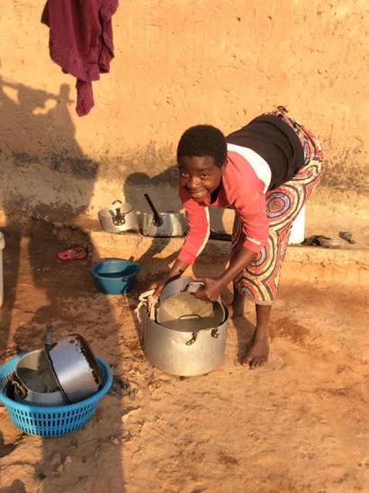 Coop member Mirriam Sibale’s sixth daughter, Esnart, doing her morning house chores. Esnart is 13 years old and is in Grade Seven at Twatemwa Primary School.