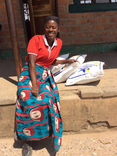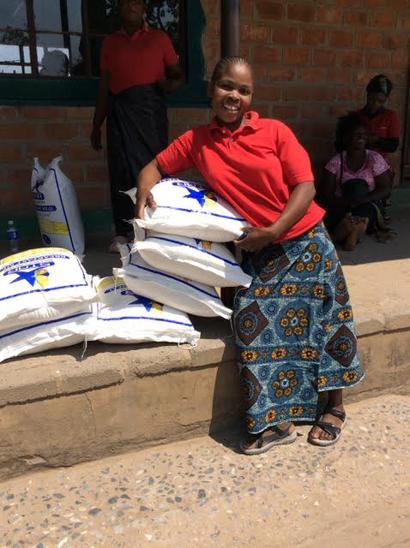 Coop member Mary carries her bag of mealie meal. Mary is former coop member Margret Chisenga’s daughter and took her mum’s place when Margaret retired. Mary takes care of her family, including her mother.