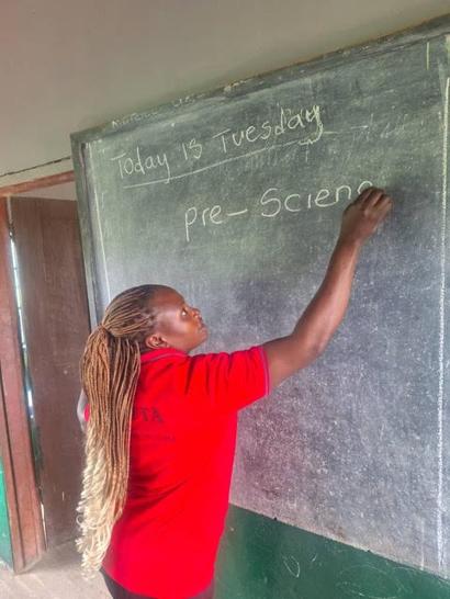 Memory in her class doing pre-science with her students. She is a qualified teacher who was trained at a teacher's college here in Ndola, with tuition paid for by Living Compassion. She is imparting what she learned in college. We are glad and so proud to have her.