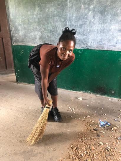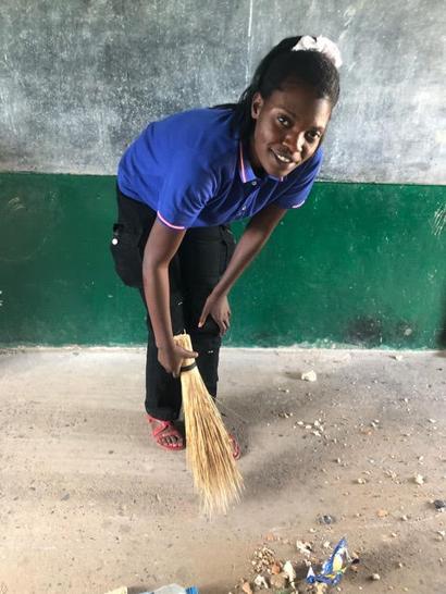 We all work as a team here at Living Compassion. Here Onesta sweeps the dining hall after lunch. Keeping things clean and tidy is high priority.