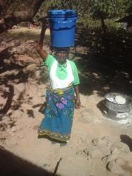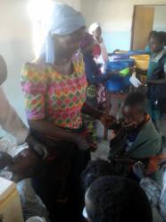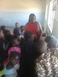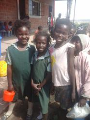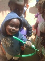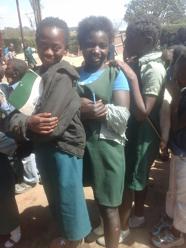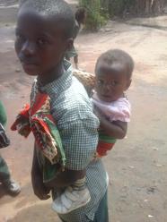 Little Eneless, Florence's daughter, growing up so fast. Here she is on her brother's back just after she was fed by mum and had to go back home. Both boys and girls are taught at an early age to carry a baby strapped on their back.