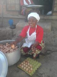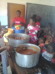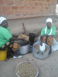 Ruth and Margret preparing peanut butter for Friday's lunch using a mortar and pestle. The women do it in style, singing as they do the work--very artistic!