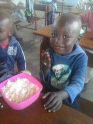 Little Joe having his lunch. He is Natasha's son and is the second-born. He loves beans, and his mother tells us that it is his favourite dish.