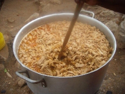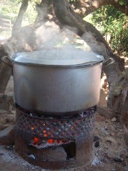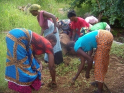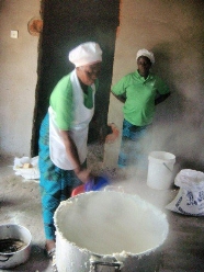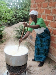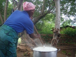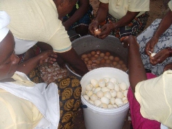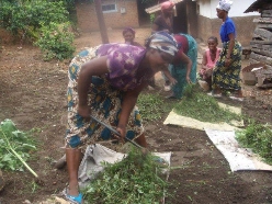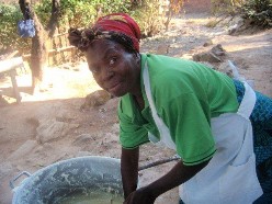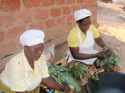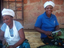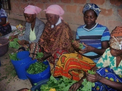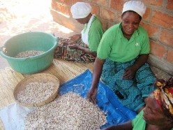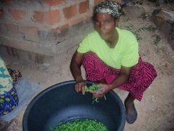 Making sure that the beans are cleaned properly. The women take time sorting in readiness for the next day's relish, which is prepared with nshima.