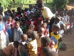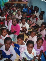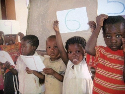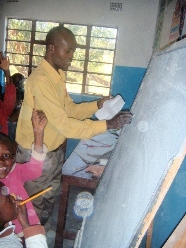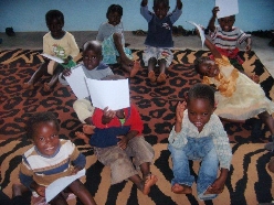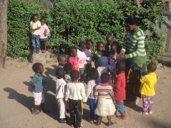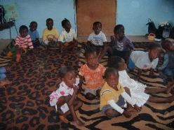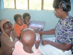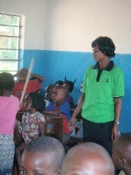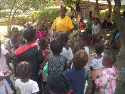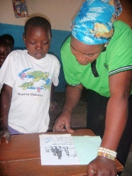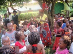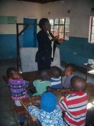 Joy using the puppets in telling a story to the little ones. This is one of the methods of teaching that is used here at Living Compassion.