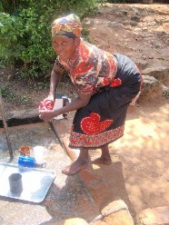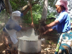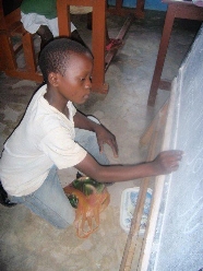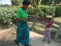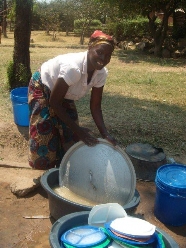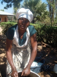 Eugenia, who has been feeling sick for some time, is now back at the property and doing well. Here she is smiling as she does the dishes.