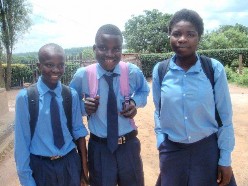 The Stay in School team in Charles's class. These three girls are so far very good in class and are very good friends.