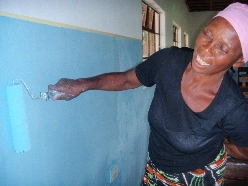 Christine painting the wall here at Living Compassion. Our property needs to look clean and neat, so we did some painting here and there. In one week we were able to paint the smaller hall, Vero's classroom, and Ethel's classroom. Teamwork pays.