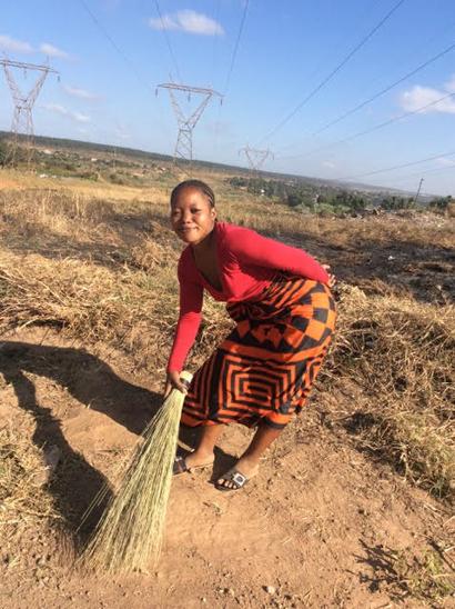 Rachel showing off one of our locally made brooms.